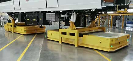 舵輪重載AGV結構排布,采用了雙舵輪中軸線安裝,外配4個萬向(xiàng)輔助輪作爲承載,這(zhè)樣(yàng)AGV結構穩定,可以順利完成(chéng)前進(jìn)後(hòu)退,橫移,轉彎,達到全向(xiàng)運行的功能(néng)。